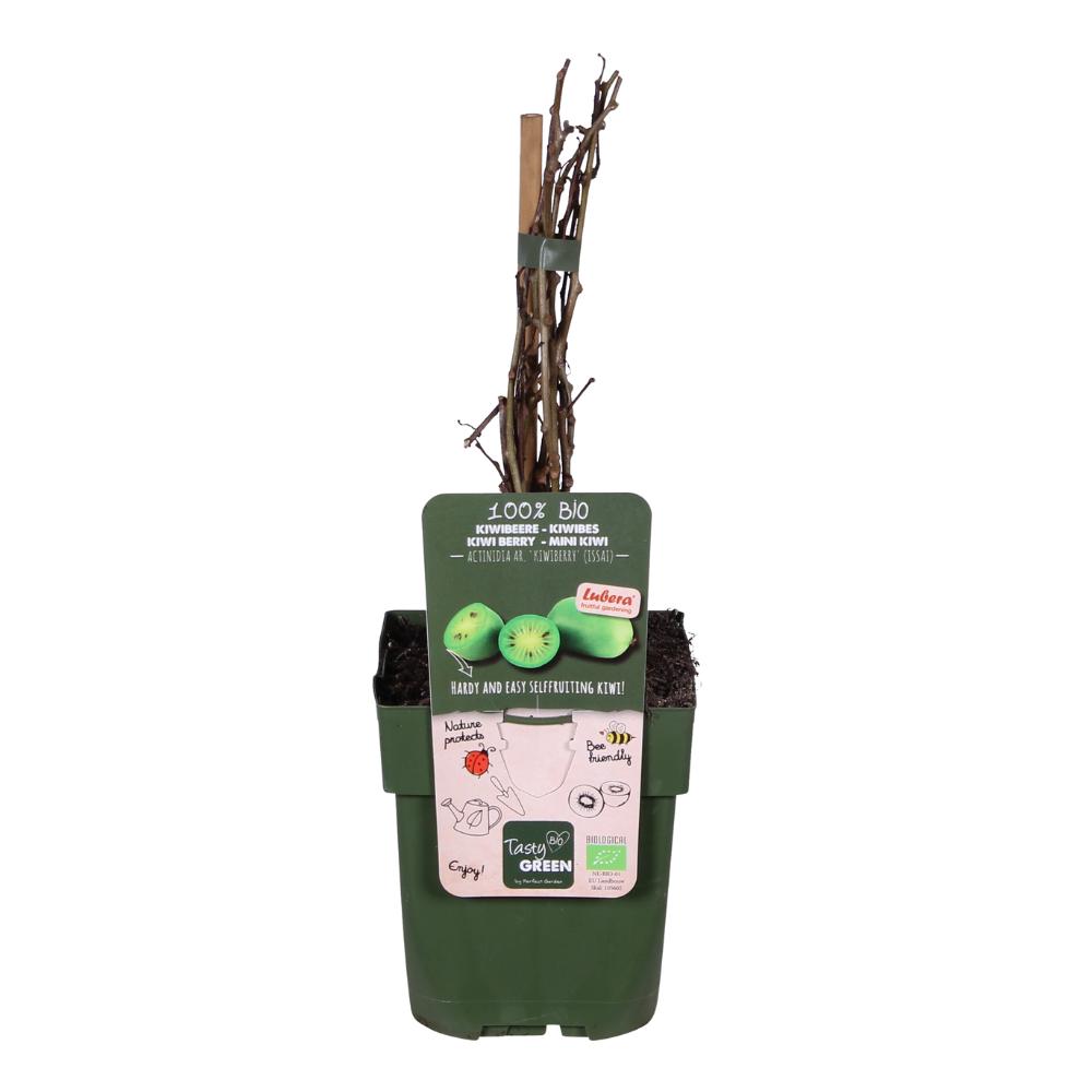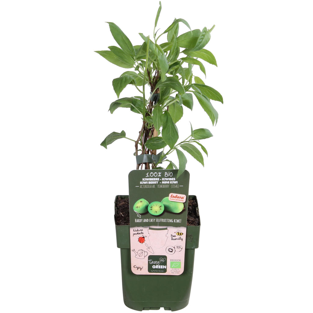 'Actinidia Arguta Issai' is een zelfbestuivende kiwibes die al op jonge leeftijd kleine, blije, haarloze vruchtjes geeft. Hij is ook bekend onder de naam mini-kiwi. De vruchten zijn zonder te schillen op te eten en rijk aan vitamine C. Ze hangen in grote trossen aan de plant, vaak gecamoufleerd tussen het blad. De opengesneden vrucht doet denken aan een miniatuur kiwi, een witte kern met daaromheen een ring van zwarte zaden en het typische lijnenpatroon. De zoete, groene bessen zijn klaar om geplukt te worden in augustus-september en zijn zo'n 2 tot 3 cm groot.