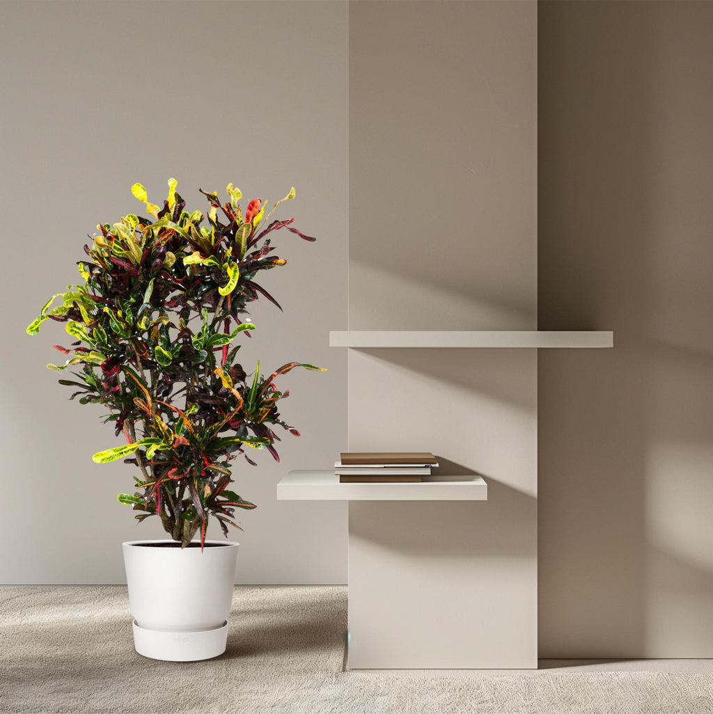 Codiaeum Mammi, beter bekend als de "Krokodillentranenplant", is een opvallende en opvallende winst voor elke binnenruimte. Met zijn felgekleurde bladeren en unieke bladpatronen veroorzaakte deze plant een levendig en exotisch element toe aan je interieur. Codiaeum Mammi geeft helder, indirect licht en is eenvoudig te verzorgen, waardoor hij geschikt is voor zowel beginners als ervaren plantenliefhebbers. Naast zijn decoratieve waarde draagt deze plant bij aan een levendige sfeer en brengt hij kleur in je leefruimte. Voeg een verrassende tropische flair en vrolijkheid toe aan je huis met deze opvallende en bloeiende plant.