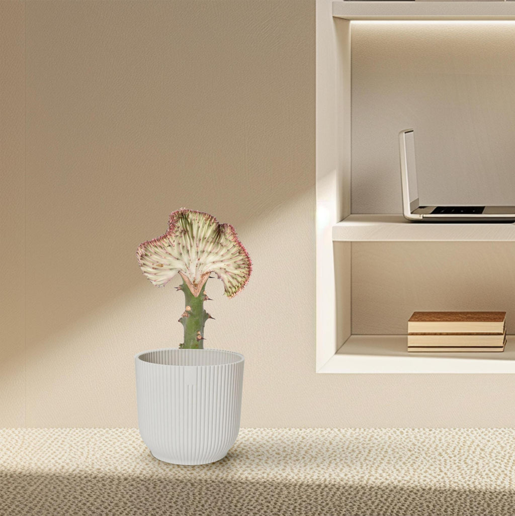 De Euphorbia lactea Cristata, ook bekend als de koraalcactus, is een buitengewone en unieke succulent die de aandacht trekt met zijn fascinerende gekristalliseerde groeiwijze. Deze sierlijke cactus onderscheidt zich door zijn golvende, gecreëerde vorm die doet denken aan koraalriffen. Met zijn groene kleur en opvallende kronkelende vorm besproken de Euphorbia lactea Cristata een praktische exotiek toe aan elke plantencollectie. Gemakkelijk te verzorgen en ideaal voor liefhebbers van aparte planten, zal deze koraalcactus zeker een boeiend element zijn.