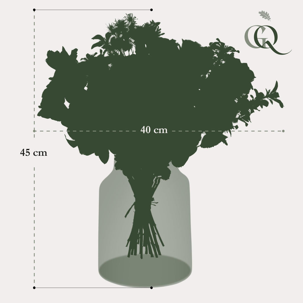 De inspirerende inspiratie rozen zijn niet van echt te onderscheiden en vormen het middelpunt van dit bos. Plaats dit prachtige boeket kunstrozen op een eettafel, schoorsteenmantel of dressoir en betoveren zo een elegante blikvanger in je kamer.