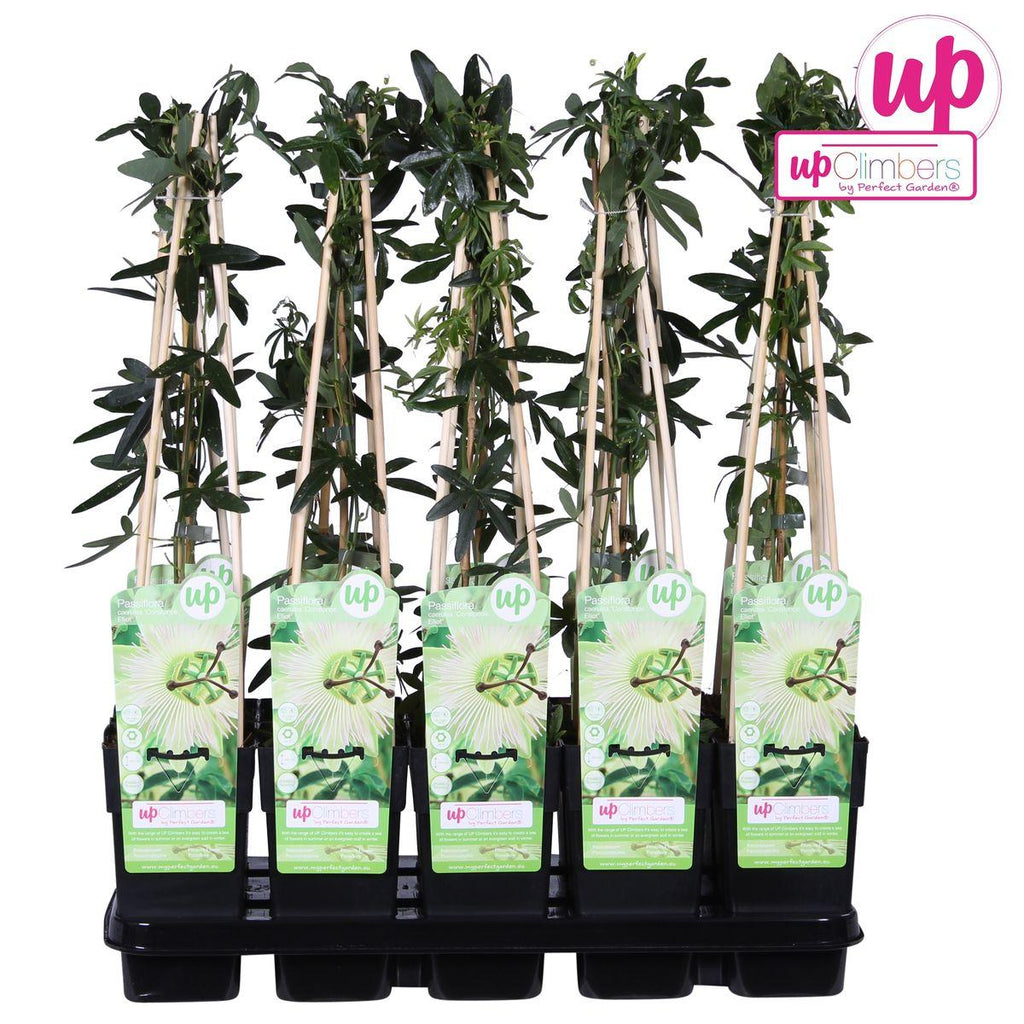 'Passiflora caerulea Constance Elliot' is een klimplant met prachtige ivoorwitte passiebloemen. De plant komt oorspronkelijk uit centraal en west Zuid-Amerika, maar nu kan je ook tropische sferen in eigen tuin creëren. Van juni tot september kun je bloemen in de passiflora verwachten. De Passiebloem is een echte mooi weer bloeier. Op warme dagen met veel licht/zon zullen de knoppen open springen. Op wat koudere en donkere dagen zullen er slechts weinig bloemen open springen. Het is een echte klimmer en heeft daarom graag ondersteuning bij het groeien van een klimrek of bescherming.