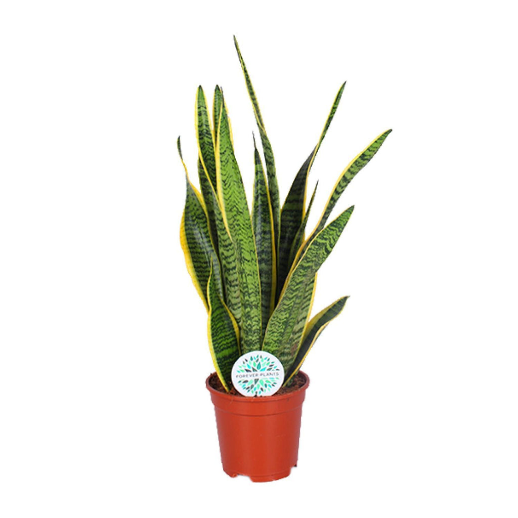 Maak kennis met onze prachtige binnenplant, Sansevieria trifasciata Laurentii, ook bekend als de Sansevieria Laurentii of de schoonmoeders tong. Deze opvallende kamerplant komt oorspronkelijk uit West-Afrika en heeft een opvallend uiterlijk met zijn levendige groene bladeren en gele randen. Als een plant die weinig onderhoud nodig heeft, geeft deze plant goed helder en indirect licht, waardoor hij perfect is voor elke binnenruimte. Met zijn luchtzuiverende eigenschappen en vermogen om te doorstaan, is de Sansevieria trifasciata Laurentii een must-have toevoeging aan je huis- of kantoorinrichting. Verfraai vandaag nog je ruimte met deze prachtige, groene schoonheid! Op zoek naar een onderhoudsvriendelijke kamerplant die onder verschillende lichtomstandigheden leeft? Zoek niet verder dan de Sansevieria trifasciata Laurentii! Deze prachtige vetplant, ook bekend als de Snake Plant, is perfect voor halfschaduw van volle zon plekken. Met zijn lange rechtopstaande bladeren die levendige gele randen tonen, gescheiden het een praktische elegantie toe aan elke ruimte. Bovendien heeft het, dankzij zijn droogtetolerante karakter, slechts eens in de 8-10 dagen water nodig. Geniet van de schoonheid en minimale verzorging van de Sansevieria trifasciata Laurentii, de ideale keuze voor drukke plantenliefhebbers. Haal de jouwe vandaag nog in huis!Wist je dat Sansevieria trifasciata Laurentii, ook wel bekend als de Snake Plant, niet alleen een praktische elegantie toegevoegd aan je leefruimte, maar ook de kwaliteit van de binnenluchtverbetering? Deze onderhoudsarme planten zijn kampioenen in het filteren van gifstoffen zoals formaldehyde, benzeen en xyleen, waardoor ze perfecte metgezellen zijn voor je huis of kantoor. Echter, terwijl ze schoonheid en gezondheidsvoordelen opleveren, zijn ze puur decoratieve planten en mogen ze niet gemengd worden met een smakelijke recept! Dus onthoud, geniet van hun opvallende uiterlijk en luchtzuiverende vermogens, maar probeer er geen salade van te maken!- Sansevieria trifasciata Laurentii heeft een potmaat van 17 cm, waardoor het geschikt is voor kleine tot beperkte ruimtes.- Met een conventionele hoogte van 60 cm Ideale variëteit van Sansevieria een verticaal element toe aan uw binnen- of buitenruimte.- Populair bekend als Schoonmoeders Tong, is Sansevieria trifasciata Laurentii een veelvoorkomende keuze omdat zijn bladeren en gewassen verzorgingseisen.- Ideaal gedijt deze plant op een plek met gedeeltelijke schaduw, waardoor het een aanpasbare keuze is voor verschillende lichtomstandigheden.- Leuk weetje: Sansevieria planten zijn zeer efficiënt in het verwijderen van giftige stoffen uit de lucht, waardoor ze uitstekende natuurlijke luchtreinigers zijn voor uw leefruimtes.