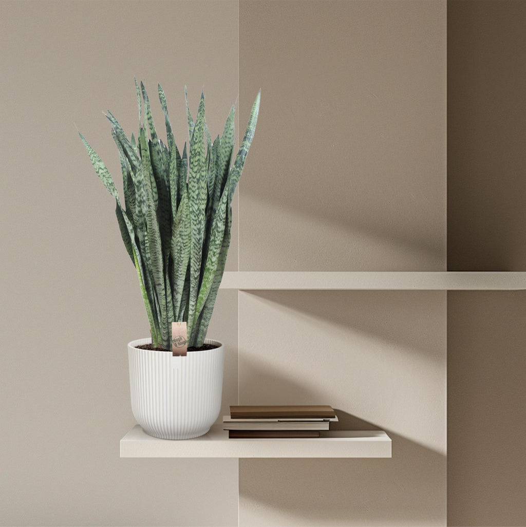 Sansevieria Zeylanica, ook bekend als de Ceylon Bowstring Hemp, is een prachtige en robuuste kamerplant die een vrijwel vaste pracht toevoegt aan elke binnenruimte. Met zijn rechtopstaande, zwaardvormige bladeren met opvallende groene tinten en lichtere strepen, waardoor deze plant direct een gevoel van tropische elegantie en sereniteit geeft. Sansevieria Zeylanica gedijt goed in zowel helder indirect licht als gedeeltelijke schaduw en handig een handig exotisme toe aan diverse binnenomgevingen. Met zijn vermogen om een gevoel van statige grandeur toe te voegen, is deze plant de ideale keuze voor liefhebbers van aanwezige en eigentijdse interieurs die op zoek zijn naar een opvallende en onderhoudsvriendelijke toevoeging.