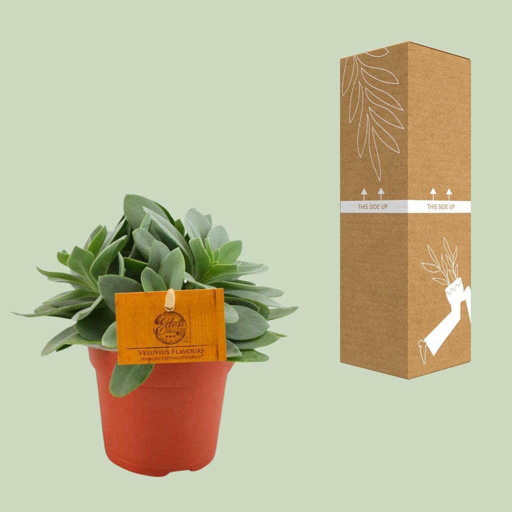Senecio Cephalophorus, ook bekend als 'Ruby Slippers' of 'Scarlet Senecio', is een opvallende en veelzijdige vetplant die zowel binnen als buiten goed gedijt. Deze plant komt voort uit de droge gebieden van Zuid-Afrika en staat bekend om zijn robuuste en onderhoudsarme karakter.