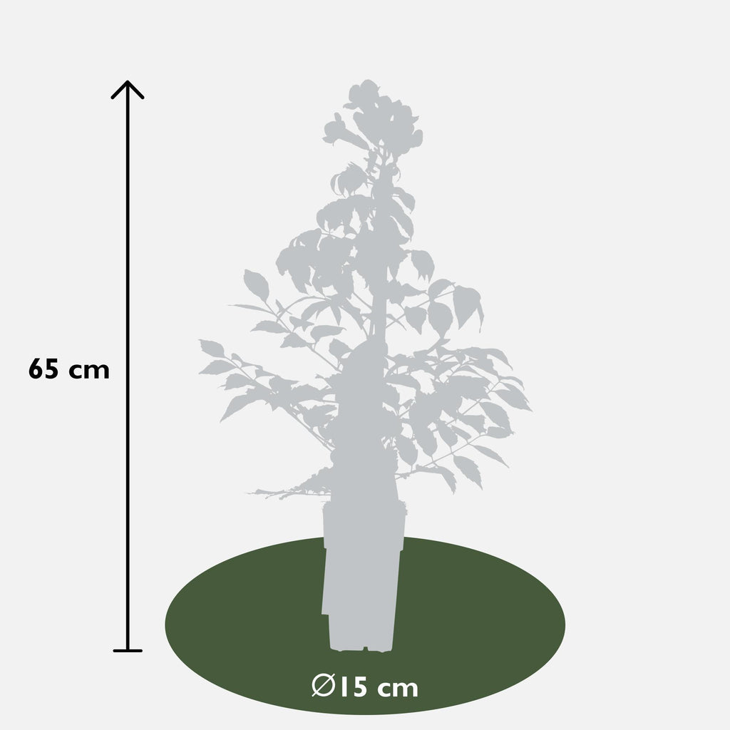 'Campsis Summer Jazz Fire Trumpet'' is een winterharde trompetklimmer die uitbundig en langer door bloeit bij veel zon. De rood bloemige Campsis groeit compacter dan andere soorten uit de Summer Jazz-serie, namelijk maximaal 3 meter hoog. De late zomerbloeier heeft de neiging om zich naar een struik te vormen. Wanneer je de Campsis wilt laten klimmen is het handig om het te ondersteunen met bijvoorbeeld een klimrek aan het begin van de groei. Deze Campsis is een zelfhechtende klimplant wat betekent dat er kleine hechtworteltjes vanuit de takken worden gevormd. Deze hechtworteltjes zullen zich langs de muur of schutting lijm bevinden.
