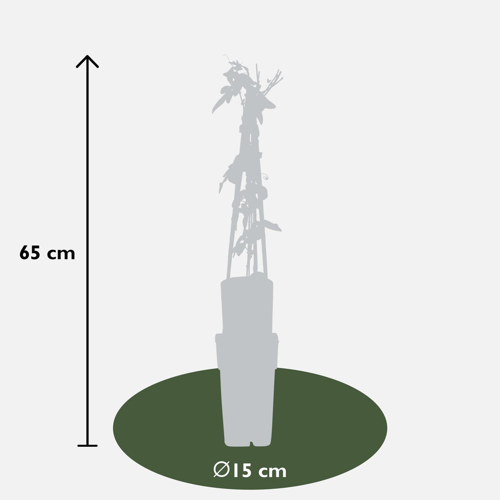 'Passiflora Purple Haze' is een klimplant met prachtige paarse passiebloemen. De plant komt oorspronkelijk uit centraal en west Zuid-Amerika, maar nu kan je ook tropische sferen in eigen tuin creëren. Van juni tot september kun je bloemen in de passiflora verwachten. De Passiebloem is een echte mooi weer bloeier. Op warme dagen met veel licht/zon zullen de knoppen open springen. Op wat koudere en donkere dagen zullen er slechts weinig bloemen open springen. Het is een echte klimmer en heeft daarom graag ondersteuning bij het groeien van een klimrek of bescherming.