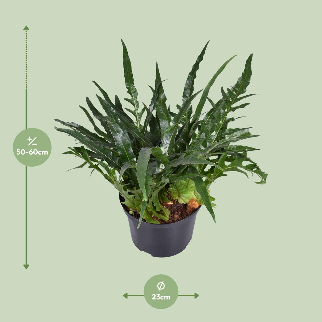 Ontdek de betoverende Aglaomorpha coronans, een fascinerende kamerplant die een natuurlijke natuurlijke charme toevoegt aan elke ruimte. Ook bekend als de Santa Rosa-varen, komt dit prachtige origineel oorspronkelijk uit tropische gebieden en gedijt het goed bij gematigde lichtomstandigheden. Zijn elegante gebogen bladeren, versierd met delicate groene bladeren, creëren een betoverende presentatie. Met zijn vervang verzorging is de Aglaomorpha coronans perfect voor zowel ervaren plantenliefhebbers als beginners. Breng de aantrekkingskracht van de Santa Rosa-varen in huis en dompel jezelf onder in de roest die het krachtige uitstraalt. Maak kennis met de prachtige Aglaomorpha coronans, een mooie plant die elke ruimte een elegantie kan geven! Deze unieke bladplant gedijt het beste op een plek met gedeeltelijke schaduw, waardoor het een ideale toevoeging is aan elke binnentuin. Met zijn ongemakkelijk onderhoud heeft deze plant slechts één keer per week water nodig, waardoor het onderhoud een fluitje van een cent is. Zijn levendige bladeren en compact formaat maken het een veelzijdige keuze voor verschillende instellingen. Verhoog krachtig uw interieurdecor met de Aglaomorpha coronans, een onderhoudsarme plant met een hoog esthetisch aantrekkingskracht. Bestel nu en transformeer uw ruimte met deze betoverende schoonheid!Wist je dat Aglaomorpha coronans, ook bekend als de Hertenpootvaren, een populaire keuze is voor liefhebbers van groen die hun huizen willen versieren? Met zijn aanwezig, delicate bladeren die op hertenhoeven lijken, gecombineerd deze plant een praktische elegantie toe aan elke ruimte. Het is echter essentieel om op te merken dat, hoewel Hertenpootvarens fascinerend zijn, ze niet bedoeld zijn voor consumptie. Geniet dus van de schoonheid van deze plant, maar laat het knabbelen over aan andere eetbare verrassingen!- Aglaomorpha coronans heeft een potmaat van 23 cm en bereikt een hoogte van ongeveer 60 cm.- Deze plant staat ook bekend als de Santa Rosa Varen en gesproken een elegante touch toe aan elke binnen- of buitenruimte.- Aglaomorpha coronans geeft de voorkeur aan een plek in halfschaduw, waardoor het een ideale keuze is voor gebieden met indirect zonlicht.- Een interessant feit over Aglaomorpha is zijn vermogen om schadelijke toxines uit de lucht te verwijderen, waardoor de luchtkwaliteit in uw ruimteverbetering.- Met zijn aantrekkelijke bladeren en luchtzuiverende eigenschappen is Aglaomorpha coronans een populaire keuze onder plantenliefhebbers en een geweldige toevoegingen aan elke groene ruimte.
