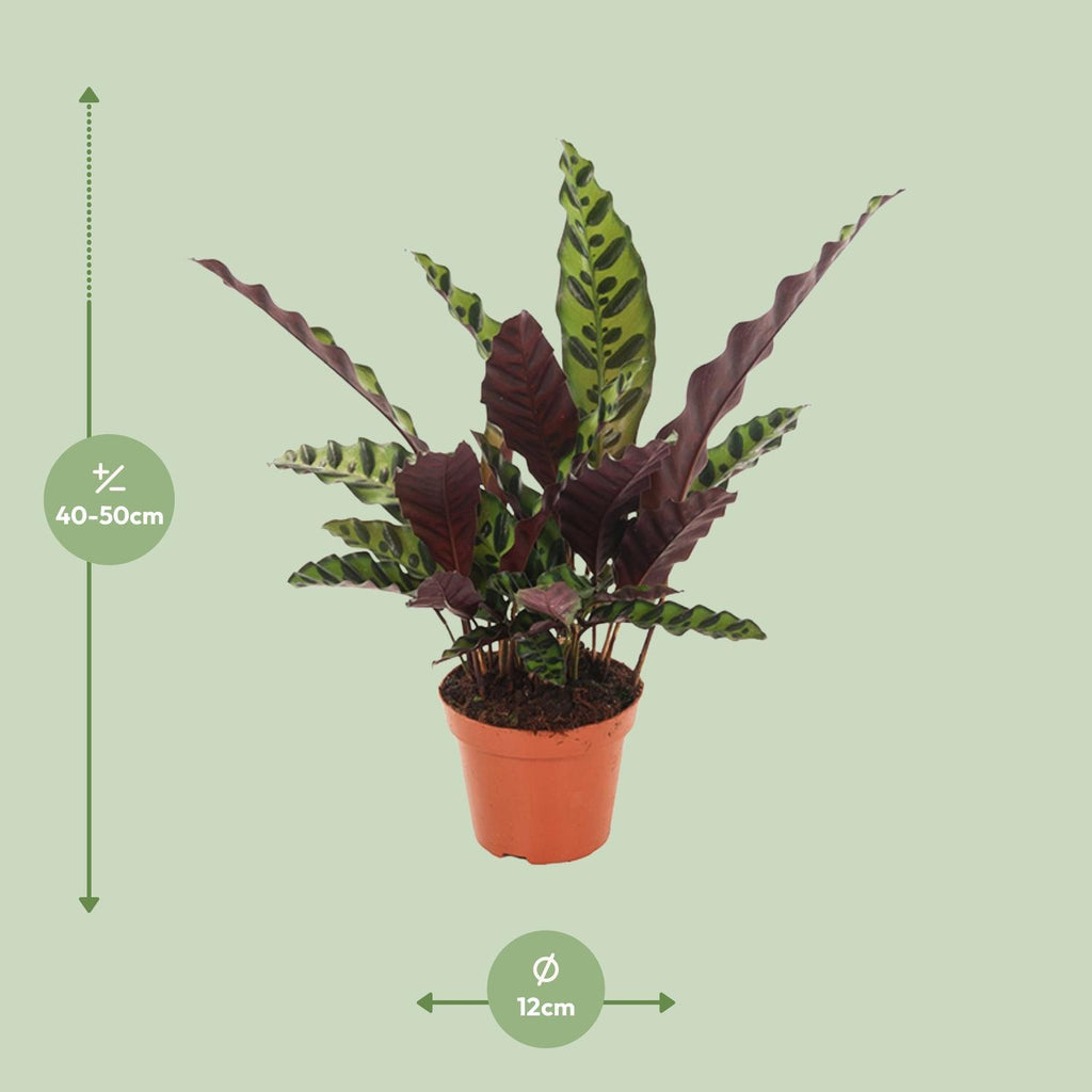 Calathea Insignis, ook wel bekend als de Calathea, is een prachtige kamerplant die een vrijwel natuurlijke elegantie toevoegt aan elke ruimte. Afkomstig uit de tropische tropische kleuren van Brazilië, heeft deze schoonheid lancetvormige bladeren met levendige groene strepen en gedetailleerde patronen. Met zijn tolerantie voor weinig licht en luchtzuiverende eigenschappen is de Calathea perfect om een ​​ontspannen sfeer te creëren in uw huis of kantoor. Ontdek vandaag nog de wonderen van Calathea Insignis en breng een stukje gebroken in uw binnenruimte. Maak kennis met de prachtige Calathea Insignis, een botanische schoonheid die een prominente plek in je huis verdient! Deze opvallende plant gedijt goed in een halfbeschaduwde of schaduwrijke omgeving en is een uitstekende keuze voor elke hoek die snakt naar een elegante elegantie. Om hem in een optimale conditie te houden, is het belangrijk om regelmatig water te geven, daarnaast is hij op oppervlakkige grond. Met zijn levendige bladeren en gemakkelijk te onderhouden karakter is deze Calathea Insign perfect voor zowel beginnende als ervaren plantenliefhebbers. Mis deze bovenstaande, schaduwliefhebbende parel niet - haal vandaag nog de Calathea Insignis in huis!Wist je dat de Calathea Insignis, ook wel bekend als de Ratelslangplant, zijn naam heeft gekregen vanwege zijn opvallende gelijkende uiterlijk op slangenhuid? Deze prachtige planten komen oorspronkelijk uit Brazilië en staan ​​bekend om hun uniek gevormde bladeren die lijken op de huid van een slang. Met het levendige groen en de dieppaarse onderkant de Calathea Insignis een verrassend exotische elegantie toe aan elke binnenruimte. Hoewel het verleidelijk kan lijken, is het belangrijk om te impliceren dat deze charmante plant uitsluitend bedoeld is voor decoratieve doeleinden en niet bedoeld is voor consumptie. Dus ga achterover zitten, ontspannen en genieten van de betoverende schoonheid van dit niet-eetbare juweel!- Calathea Insignis, ook bekend als Calathea, is een populaire kamerplant met een potmaat van 12 cm.- Deze prachtige plant kan uitgroeien tot ongeveer 50 cm in hoogte, waardoor het een ideale keuze is voor kleinere ruimtes.- Calathea geeft de voorkeur aan een plek in halfschaduw, waardoor het perfect is voor binnenruimtes met beperkt licht.- Een interessant feit over Calathea is dat de bladeren gedurende de dag omhoog en omlaag bewegen als reactie op licht. Dit fenomeen, bekend als nyctinastie, beïnvloed een interactief element toe aan de schoonheid van de plant.- De unieke patronen en kleuren op de bladeren van Calathea maken het een visueel opvallende toevoegingen aan elk huis of kantoor, terwijl het ook zorgt voor een natuurlijke luchtzuiverend effect.