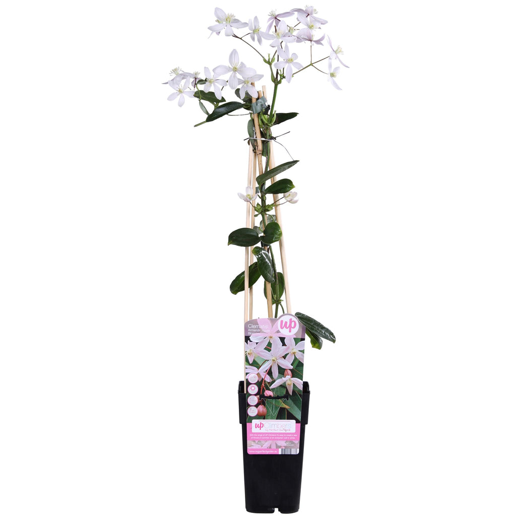 'Clematis armandii Apple Blossom' dankt zijn naam aan de bloemen die qua kleur een grote gelijkenis vormen met de bloemen van de appelbomen. De bloemen zijn namelijk in de knop roze van kleur, de bloemen zelf zijn wit gekleurd met geelwitte meldraden in het midden. De bloemen verschijnen al in het vroege voorjaar aan de klimplant. Het is een uitbundige bloeier, waar bijen graag op af komen. Bijzonder aan deze klimplant is dat dit een van de weinige clematissen is die groen blijft in de winter. Zijn bladeren zijn leerachtig, langwerpig groen en zeer elegant.