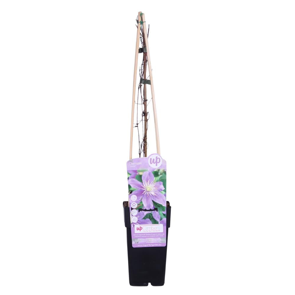 'Clematis Justa' is een grootbloemige clematis met lila bloemen. Deze bloemen verschijnen rond mei- juni en de clematis bloeit door tot september. De clematis is winterhard, maar bladverliezend. Snoeien van deze plant is niet noodzakelijk, maar kan wel als hij bijvoorbeeld te groot wordt. Omdat deze grootbloemige clematis vrij vroeg bloeit is het aan te raden pas na de bloei te snoeien. Om de clematis beter te laten klimmen heeft hij een beetje hulp nodig. Het beste kun je de plant dan ook langs een rek, draad of stok omhoog leiden. De clematis doet het dus zowel in de halfschaduw als in de zon erg goed.