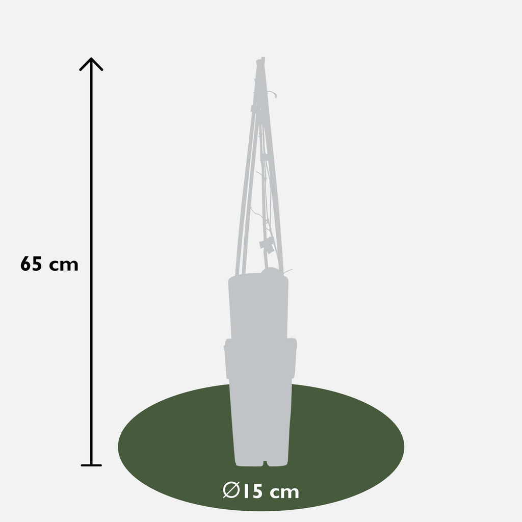 'Clematis The President' behoort tot de grootbloemige clematissen en bloeit met volle paars-blauwe bloemen. Hij bloeit twee keer per jaar en brengt daarom een mooi accent aan in jouw tuin. De eerste bloei is rond mei-juni en de tweede bloei is tussen juli en september. Nadat de clematis voor de eerste keer bloem heeft gegeven kun je deze het beste terug snoeien, zodat hij herhaaldelijk voor de tweede keer gaat bloeien. De nette en compacte groei maakt deze klimmer geschikt voor zowel grote als kleine tuinen.