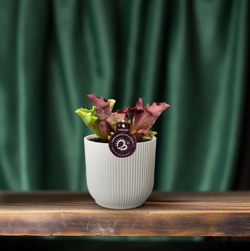 Sarracenia, algemeen bekend als de bekerplant, is een intrigerende en unieke kamerplant. Deze vleesetende plantensoort is inheems in het oosten van de Verenigde Staten, met naam in de kustvlaktes en moerasgebieden. Zijn natuurlijke habitat is te vinden in regio's als Florida, Georgia en de Carolinas.