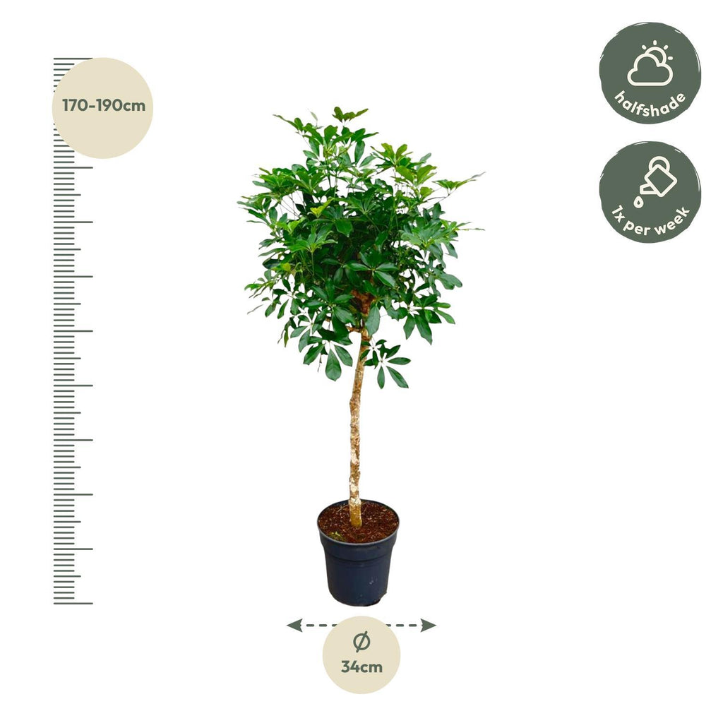 De Schefflera op stam, ook bekend als de Vingerboom, opmerkelijk een tropische grandeur toe aan binnen- en buitenruimtes. Met zijn opvallende, handvormige bladeren en slanke stam, naadloze de Schefflera op stam direct een gevoel van schijnbare allure en botanische elegantie. Deze plant gedijt goed in helder indirect licht en matig omstandigheden, waardoor hij perfect is voor diverse interieur- en landschapsontwerpen. Naast zijn esthetische aantrekkingskracht is de Schefflera ook een luchtzuiveraar, waardoor de kwaliteit van de leefomgeving wordt verbeterd. Met zijn slanke stam en elegante verzorgingseisen is de Schefflera op stam een favoriete onder liefhebbers van liggende en onderhoudsvriendelijke planten.